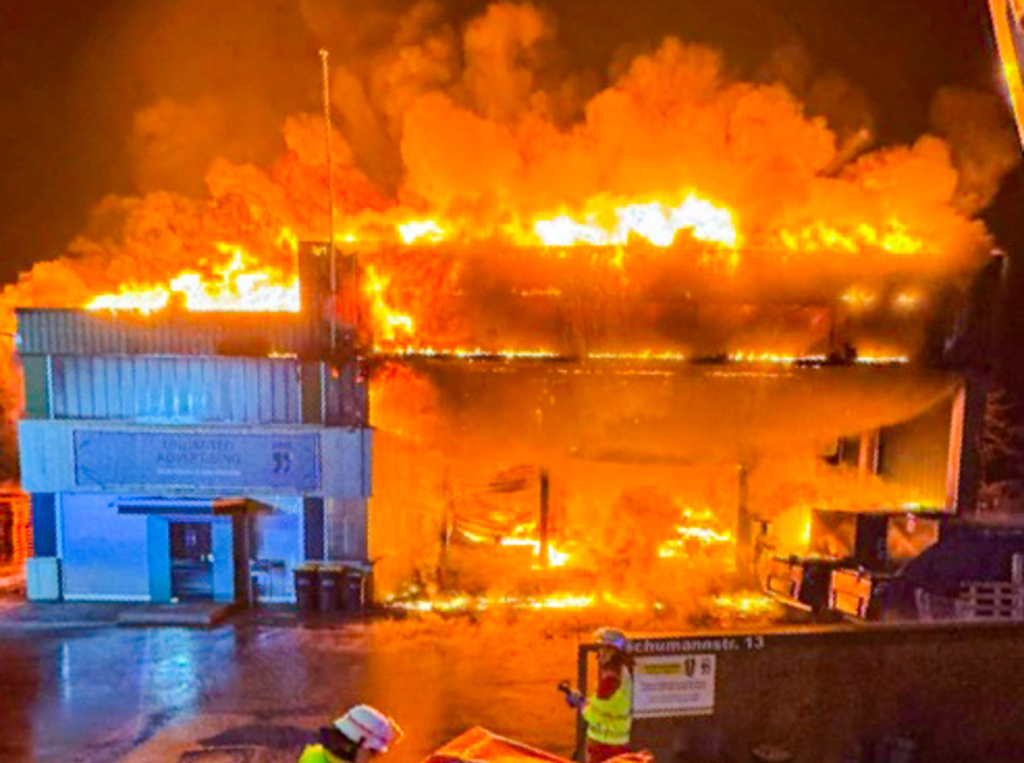 Am frühen Sonntagmorgen ist in Minden ein Lagerhaus im Industriegebiet Hahlen Ost vollständig ausgebrannt. Die Löscharbeiten dauerten zwei Tage lang an: