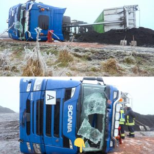 Dieses Ablademanöver ging schief: Bei Eiweiler stürzte ein mit Erde beladener Lkw um und landete auf der Seite, wobei sich große Mengen der Ladung an der Unfallstelle…