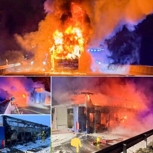 Flammeninferno auf der A52: Reisebus steht lichterloh in Vollbrand, alle Fahrgäste retten sich