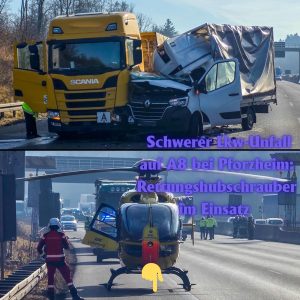 Ein schwerer Verkehrsunfall hat am Mittwochmittag auf der Autobahn 8 bei Pforzheim zu einer Vollsperrung in Fahrtrichtung Karlsruhe geführt. Gegen 12:00 Uhr kollidierten kurz vor der Anschlussstelle…