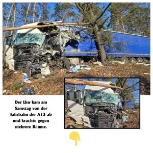 Stau-Chaos auf A13: Lkw kommt von Fahrbahn ab, Kartoffellaster verliert 400 Liter Diesel
