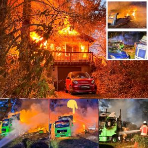 Großbrand vernichtet ganzes Anwesen in Karlsbad – Feuerwehren im Großeinsatz
