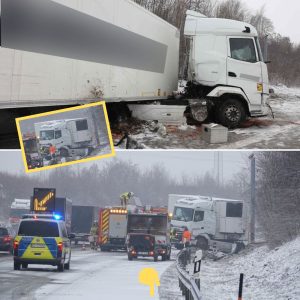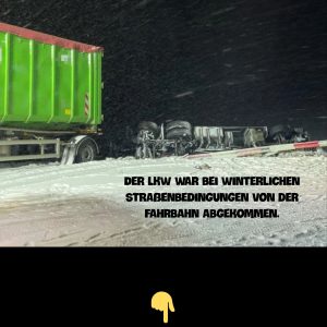 Wintereinbruch: Lkw durchbricht Leitplanke und stürzt Böschung hinunter