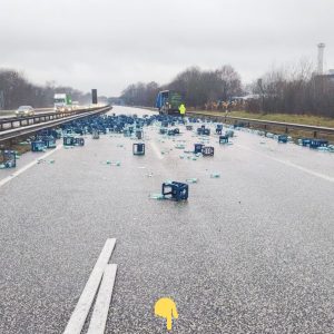 Wasser marsch auf A27: Lastwagen verliert 200 schlecht gesicherte Wasserkisten