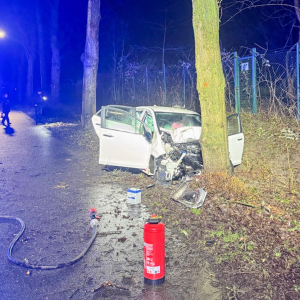 Teenager (14, 15) fliehen in Mietwagen vor Polizei: Auto kracht gegen Baum und fängt Feuer