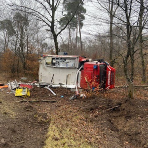 Feuerwehr-Lastwagen überschlägt sich: Mehrere Hunderttausend Euro Schaden