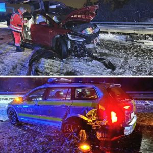 Schwerer Unfall auf der A9: Tesla kracht in Polizei-Einsatzwagen – sechsstelliger Schaden!