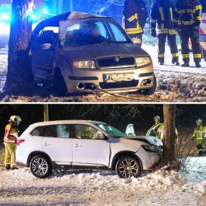 Verletzte und Vollsperrungen: Autos krachen bei Glätte gegen Bäume