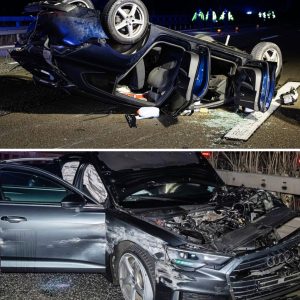 Audi A6 überholt auf Autobahn rechts und verursacht schweren Unfall: Fahrer flüchtet