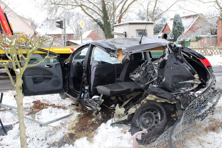Böser Unfall am Bahnübergang: Zug schleudert Seat durch die Gegend