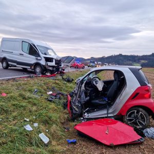 Heftiger Frontalcrash bei Überholmanöver: Zwei Schwerverletzte