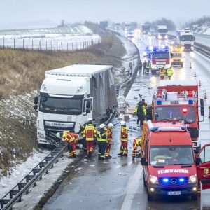 Karambolage auf A7: Feuerwehr schneidet schwer verletzte 73-Jährige aus Wrack