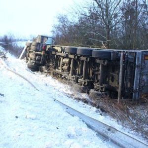 Am Montagmorgen kam ein Lkw von der Straße ab und kippte in den Graben. Ein Mann wurde verletzt.