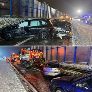 Massenkarambolage mit 20 Fahrzeugen: 13 Verletzte durch spiegelglatte Fahrbahn