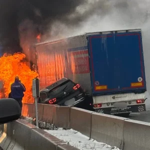 Lkw kommt von glatter Spur ab und quetscht Autos ein: Person stirbt in brennendem Wrack
