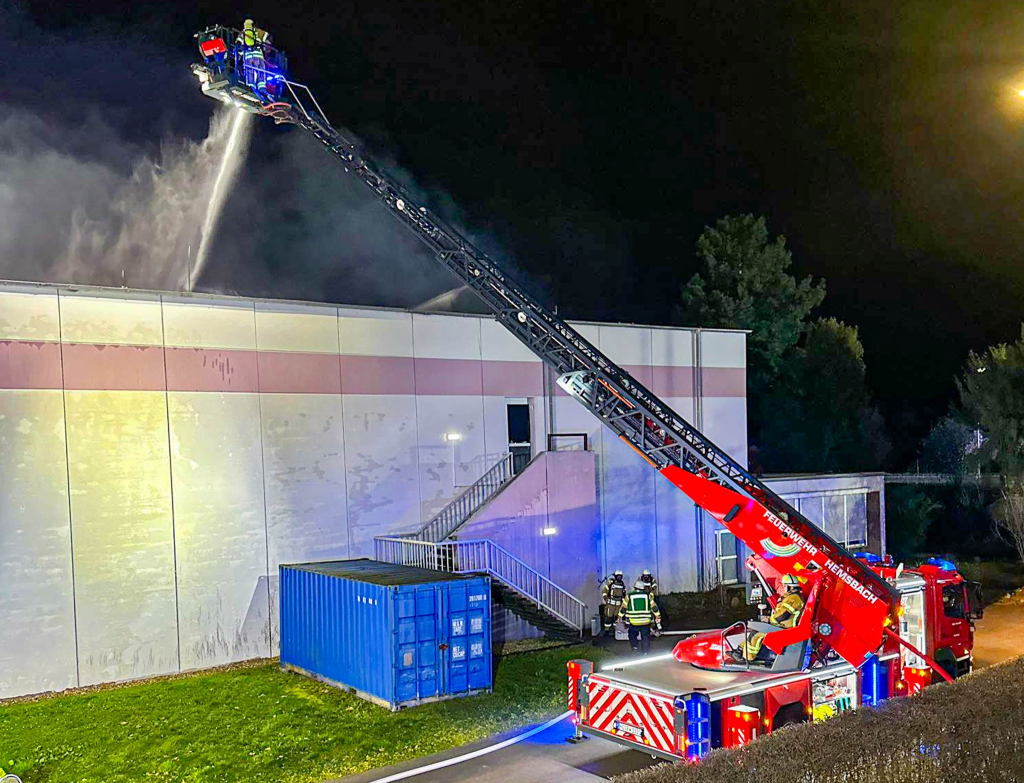 Bei einem Großbrand ist am Samstagabend in Laudenbach (Rhein-Neckar-Kreis) eine Sporthalle vollständig zerstört worden.