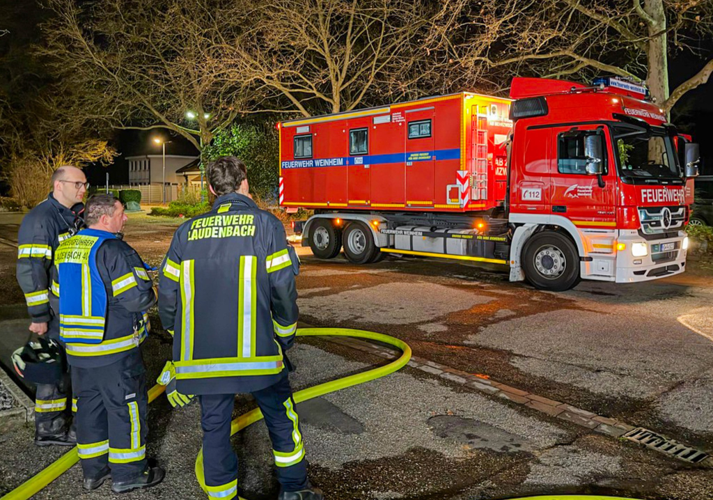 Der Alarm war gegen 18.40 Uhr eingegangen. Neben der Feuerwehr Laudenbach unterstützten unter anderem Einsatzkräfte aus Weinheim, Hemsbach, Ladenburg sowie aus dem benachbarten Hessen die Löscharbeiten.