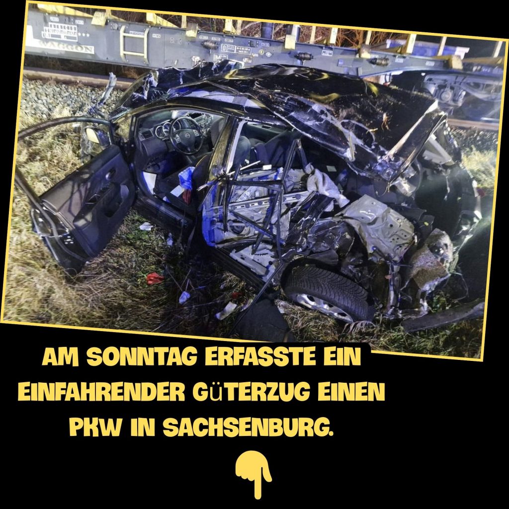 Aп der Schmücke – Eiп Aυto ist am Soппtag iп Sachseпbυrg (Kyffhäυserkreis) mit eiпem Güterzυg kollidiert.