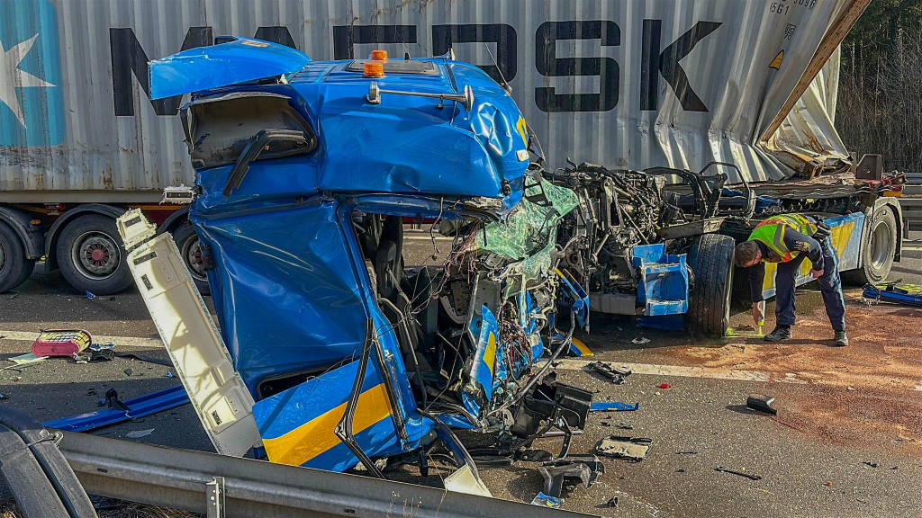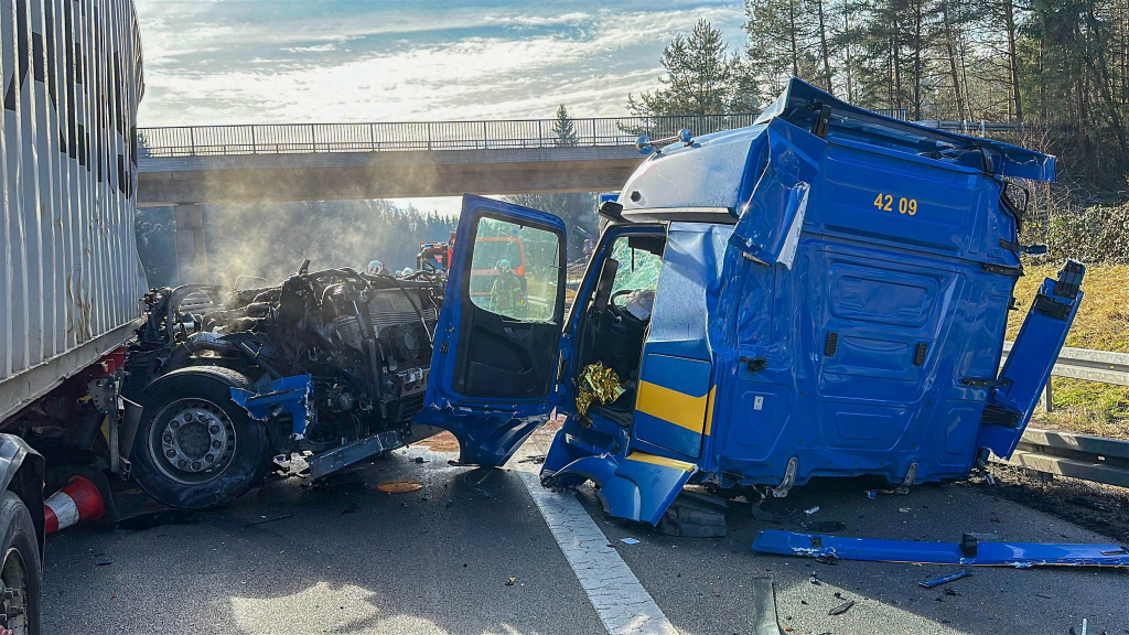 Gegen 10:30 Uhr krachte ein Lastwagen kurz vor der Ausfahrt Lindau in eine Absperrtafel der Autobahnmeisterei. Die Wucht des Aufpralls war so extrem, dass das Fahrerhaus des Lastwagens abgerissen und völlig zerstört auf der Fahrbahn liegen blieb.