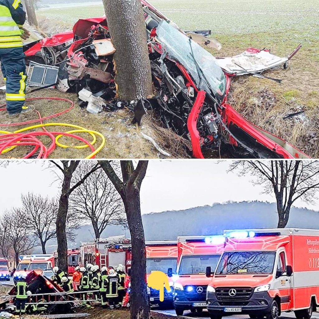 Kleintransporter völlig zerfetzt: Acht Insassen bei Frontalcrash mit Baum verletzt