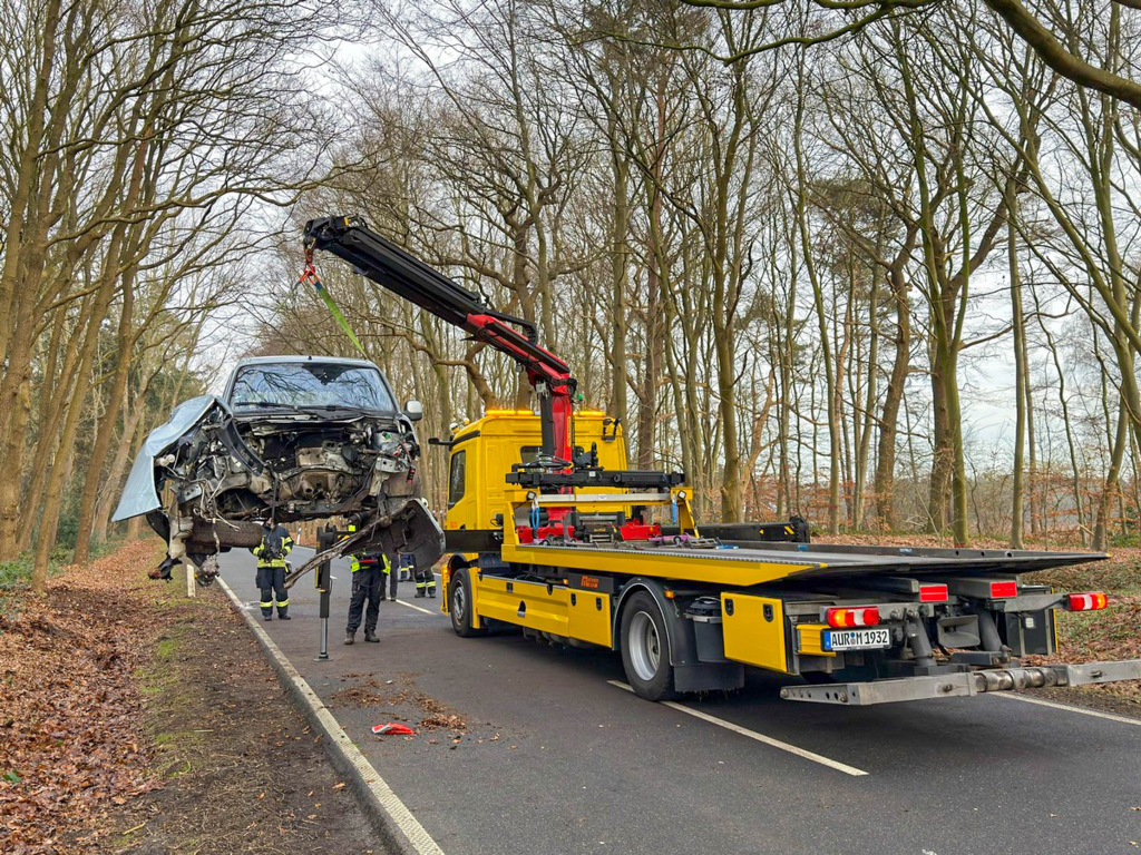 In Aurich ist es am Mittwochmittag zu einem schweren Verkehrsunfall gekommen: Kurz nach der Einmündung zur Ringstraße kam ein Auto von der Brockzeteler Straße ab und prallte gegen einen Baum.