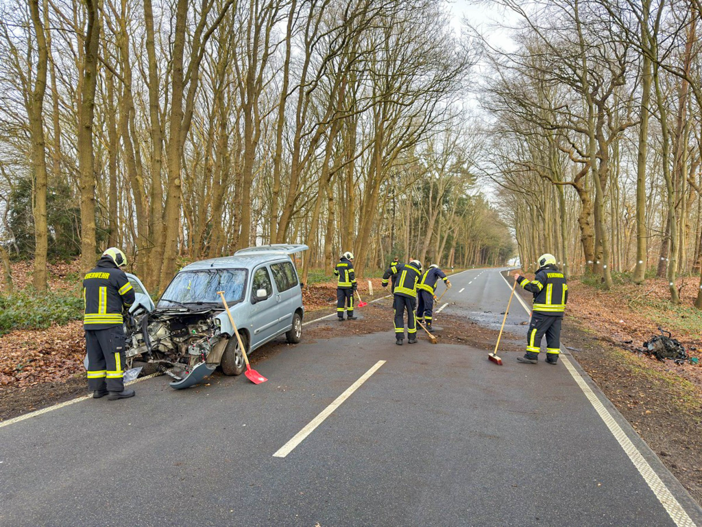 Nach der Bergung des Fahrzeugs und der groben Reinigung der Fahrbahn war der Einsatz nach rund einer Stunde beendet, die Brockzeteler Straße blieb kurzzeitig gesperrt. (Fotos: Feuerwehr)