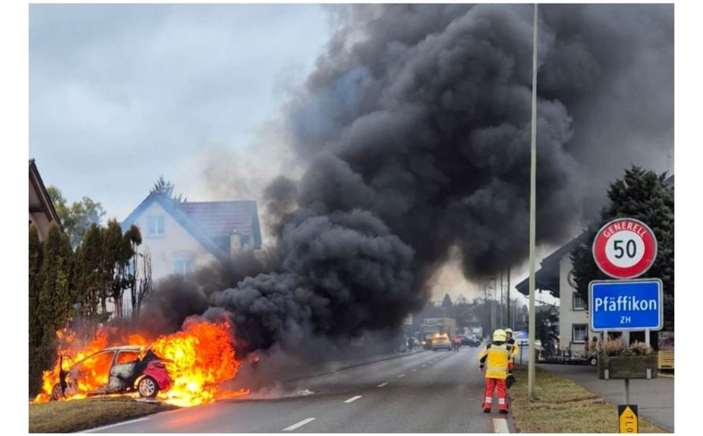 Am Montag, 26. Januar 2026, kam es in Pfäffikon zu einem Brand. Ein Auto ging in Flammen auf und auch eine Hecke geriet in Brand. Der Verkehr wurde vorübergehend umgeleitet.