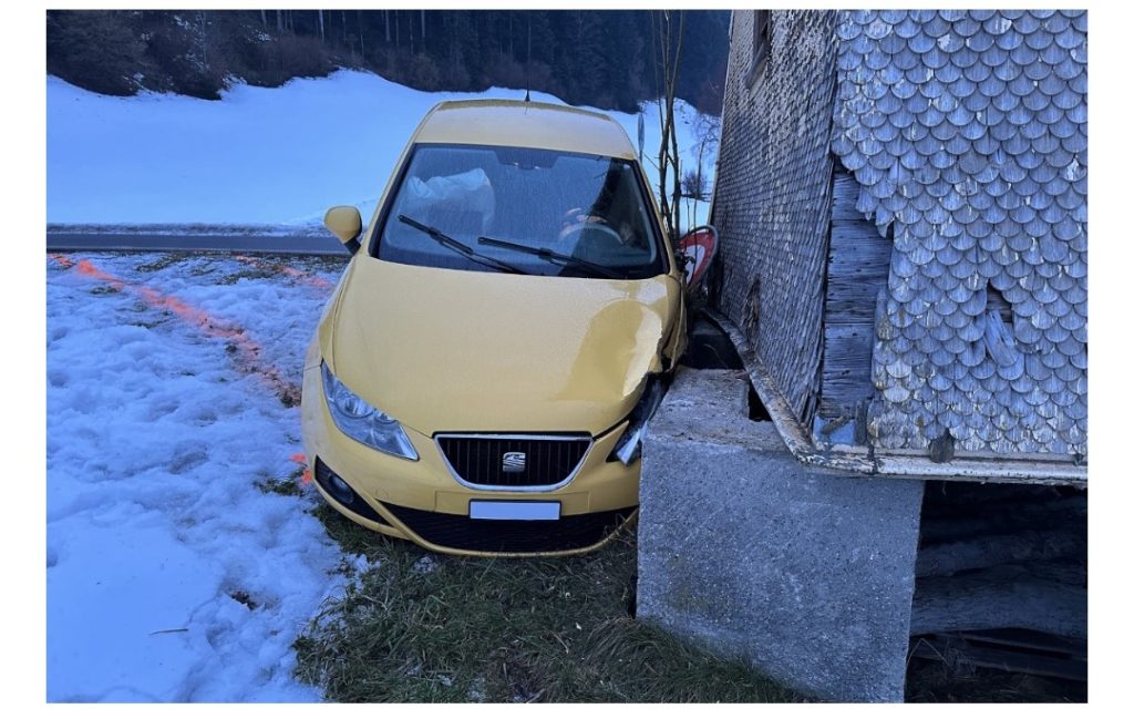 Bei der Örtlichkeit Steingocht verlor sie aufgrund der winterlichen Verhältnisse ausgangs einer Linkskurve die Herrschaft über den Personenwagen. In der Folge geriet sie über den rechten Fahrbahnrand hinaus und kollidierte mit einer kleinen Remise.