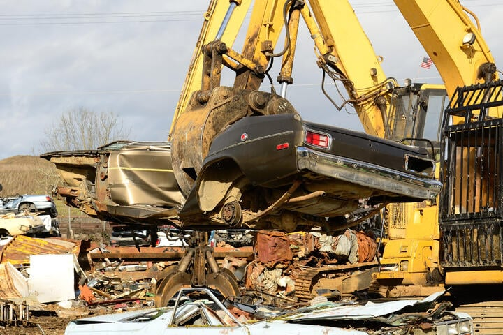 Tragödie auf Schrottplatz: Baggerfahrer drückt Auto ein, dann entdeckt er eine leblose Person darin