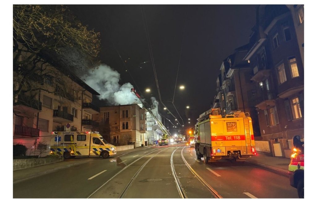 Anwohner meldeten am Samstagabend, kurz vor 18 Uhr, der Einsatzleitzentrale 144/118 von Schutz & Rettung Zürich (SRZ), dass Flammen aus dem Dach eines Mehrfamilienhauses schlagen würden. Die sofort ausgerückten Rettungskräfte der Berufs- und Milizfeuerwehr und der Sanität von SRZ sowie der Stadtpolizei Zürich trafen vor Ort auf ein Gebäude, dessen Dach in Vollbrand stand.